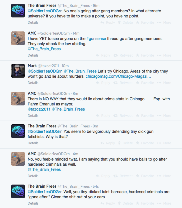 Tweeted several things. Only this one got a butt-hurt reply from a gun-fucker.